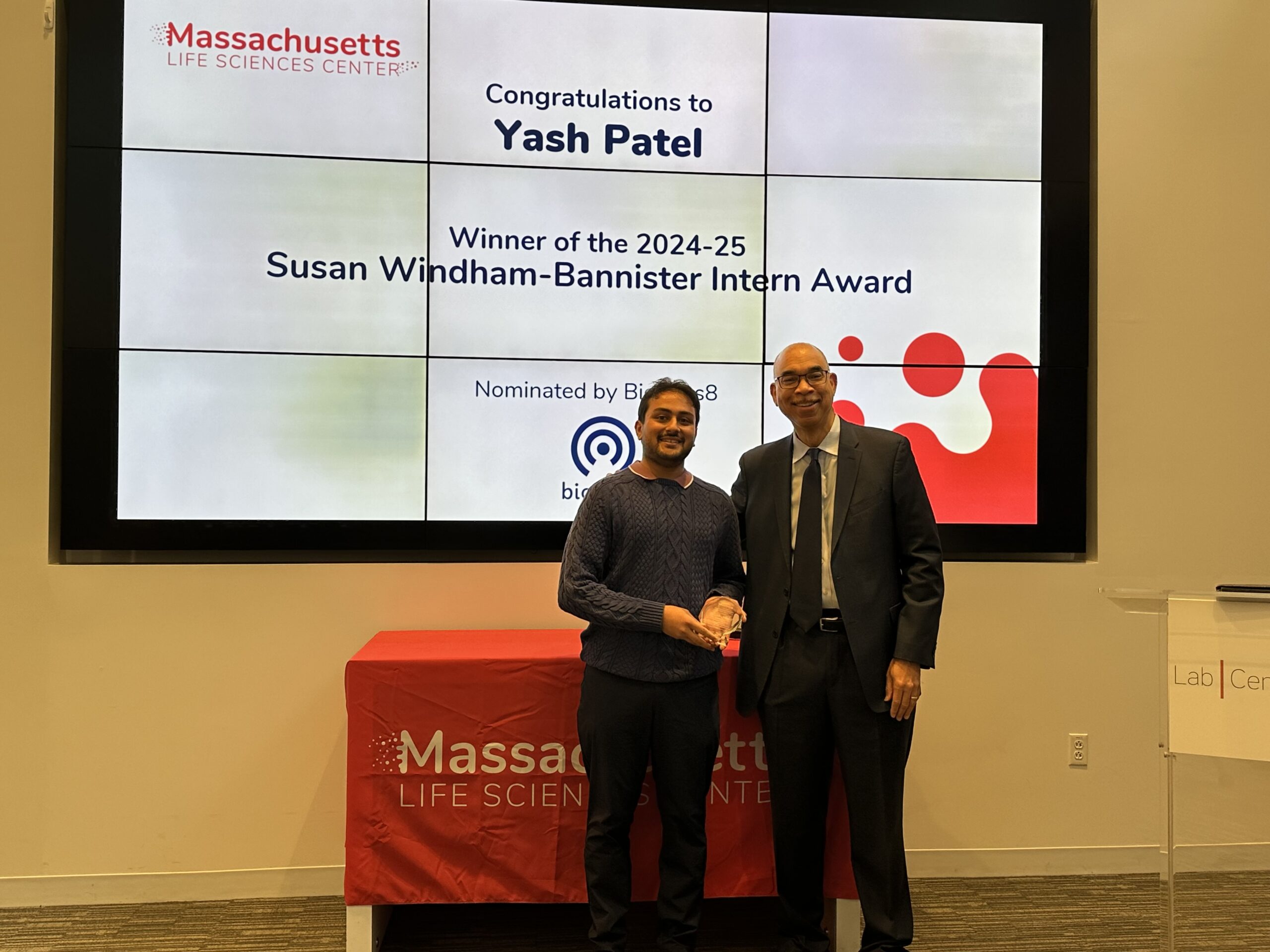 Boston University student Yash Patel joined BioSens8, a Cambridge-based digital health company developing real-time biosensors that leverage microbial engineering to deliver precise health insights, as part of the Massachusetts Life Sciences Center’s (MLSC) Internship Challenge in 2024. Through his impressive technical skills and strong collaboration efforts, Yash was awarded the MLSC’s Inaugural Susan Windham-Bannister Life Sciences Intern Award.